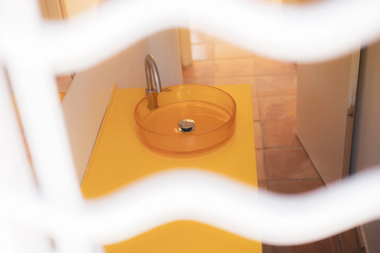 Kitchen & bathroom furniture in stainless steel & sunny yellow.